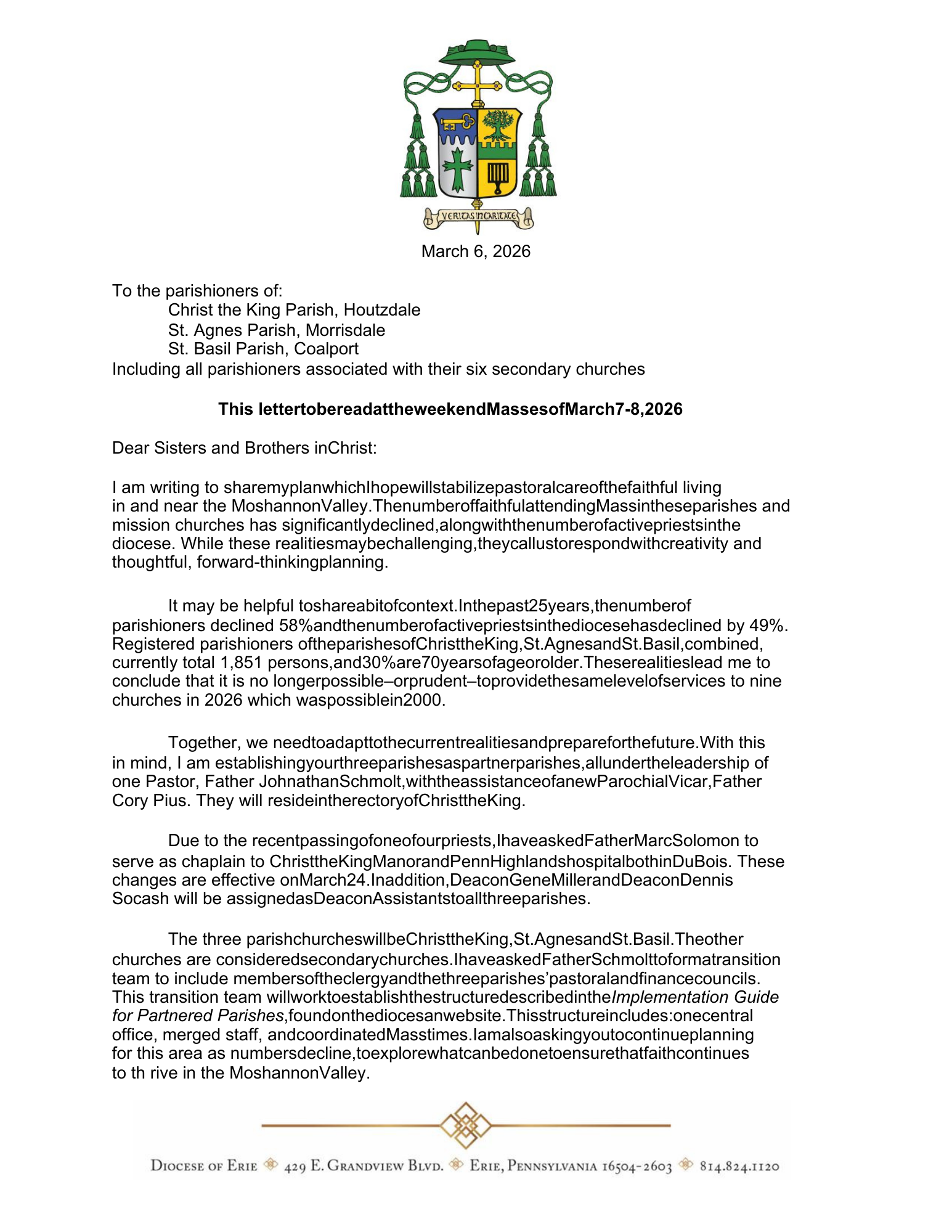 March 9, 2026Bishop Persico outlines the changes that will come to the Catholic Churches in Clearfield County beginning this month.