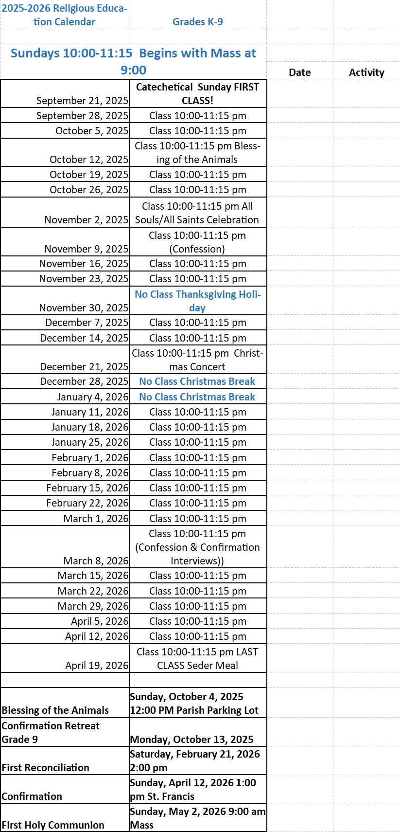 Religious education leader: Cassandra Kitko, c.kitko@ctk-ic.org 814-590-0325
